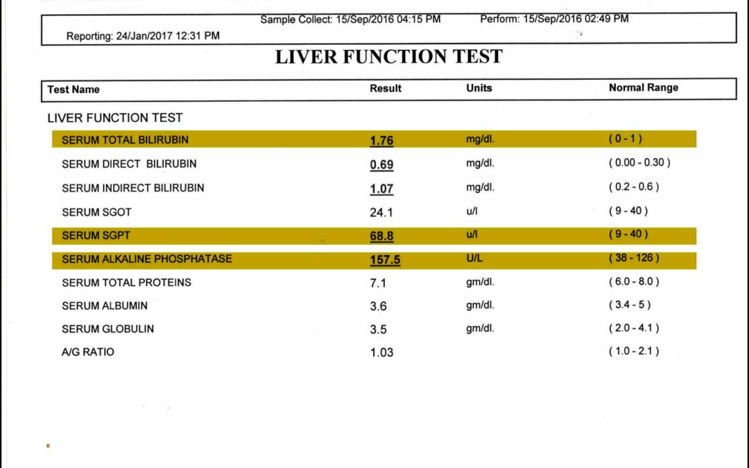 The procedure was carried out in September 2016 and a 3 month follow up in December 2016 shows that the major markers of Total Billrubin has decreased in the patient and markers such as SGPT and Phosphate are well within normal range now. The patient is encouraged with the results and the general improvement in the physical health and a next round of therapy is being planned soon.